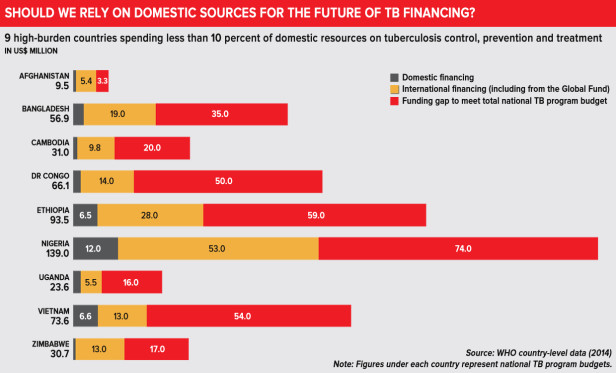 In response to lackluster support from the international donor community, advocates have turned their attention toward domestic resources. In the World Health Organization’s global TB report in 2014, the U.N. health agency argued that given current estimates, 80 percent or $6 billion of the required $8 billion financing for TB in 2015 “could be mobilized from domestic resources.”