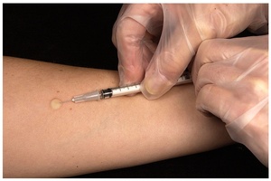 In the last year, a new TB diagnostic machine has come onto the market called the Gene Xpert. It is more accurate than using a microscope and detects TB in two hours. But it is expensive and not widely available at the time this article was written. - If the health worker suspects the person to have latent TB (being infected with the TB bacillus, but not having symptoms or transmitting the bacillus), then she or he will order a tuberculin skin test. It is also known as the Mantoux test. The health worker will inject a small amount of attenuated TB bacteria into the skin on the person's arm. Attenuated TB bacteria are bacteria that look and behave like the normal Mycobacterium tuberculosis, but cannot do the same harm because they have been 'tamed'. The results of this test are ready after 2 days, and the person will have to come back to the health worker to have the test interpreted.